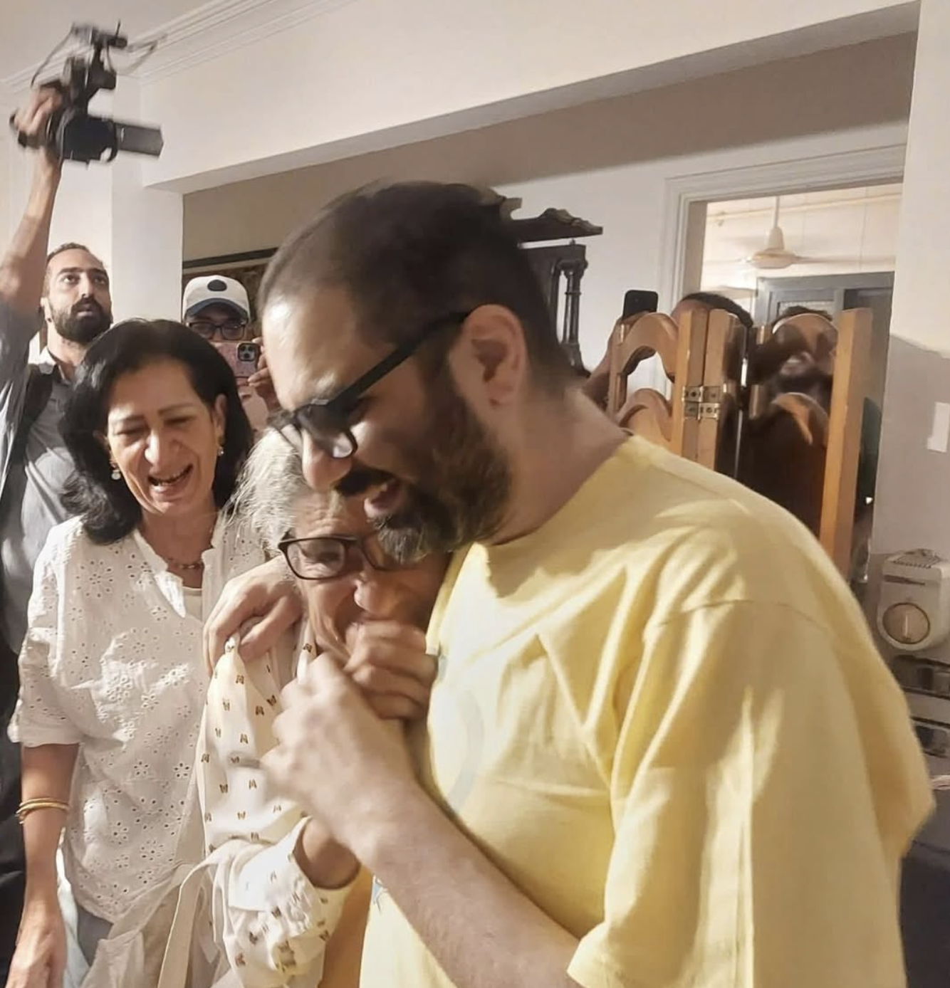 This past week, Alaa Abd El-Fattah was freed after ten years in prison. His mother, Laila, has been on a hunger strike for more than 300 days, fighting for her son’s freedom. In a video, Alaa embraces his mother. She says, “I wish other families could experience this too.”