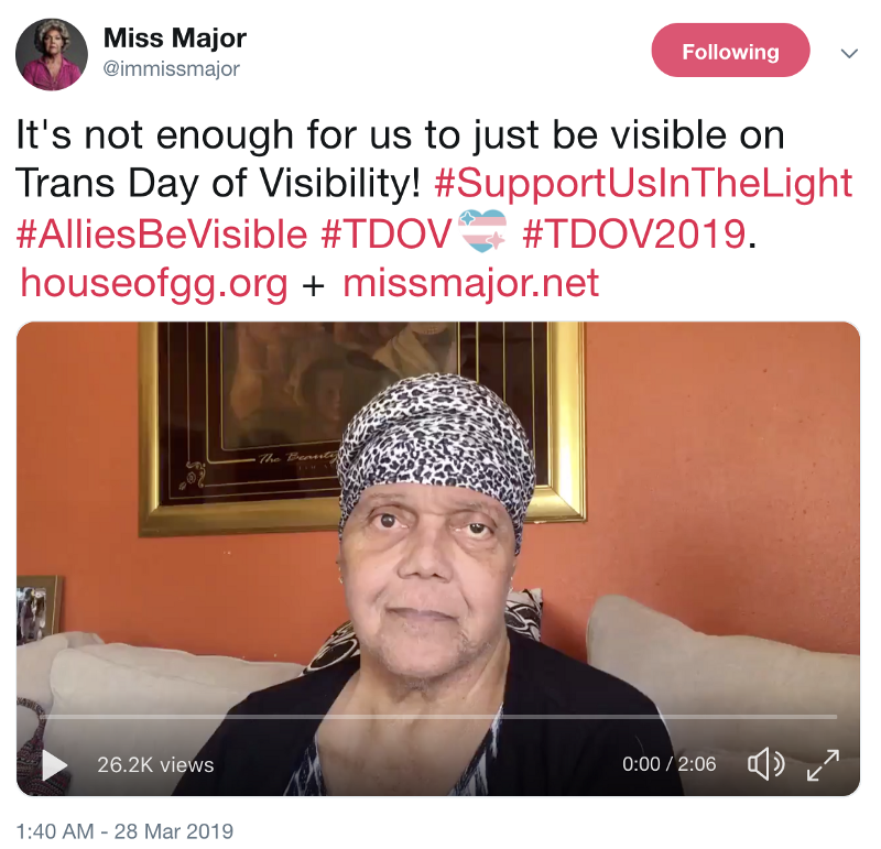 Trans people — experience so much of this and more. If you haven’t listened to Miss Major’s call for allies to be more visible — listen to it now: